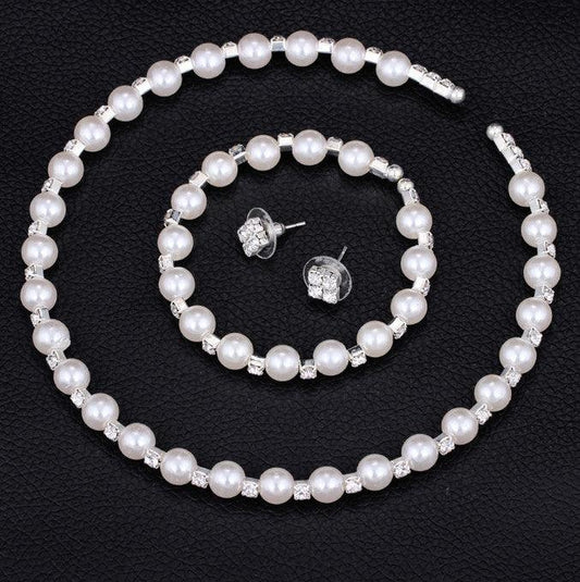 8MM bridal handmade pearls, Rhinestone necklaces set