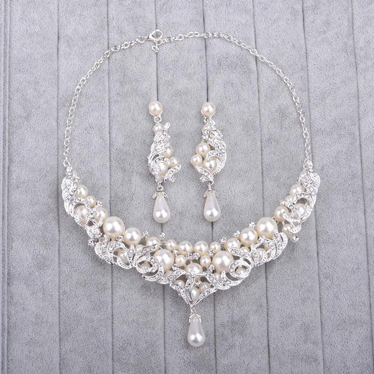 Alloy Rhinestone Wedding Dress WY Crystal Necklace Earrings Two Sets