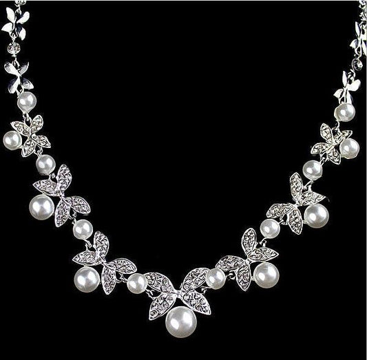 Butterfly Pearl Three Piece Bridal Soft Chain Headdress Jewelry Set