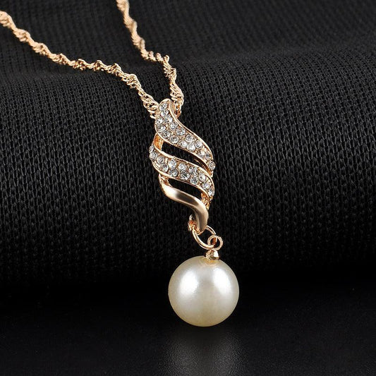 Bride diamond pearl necklace earrings set