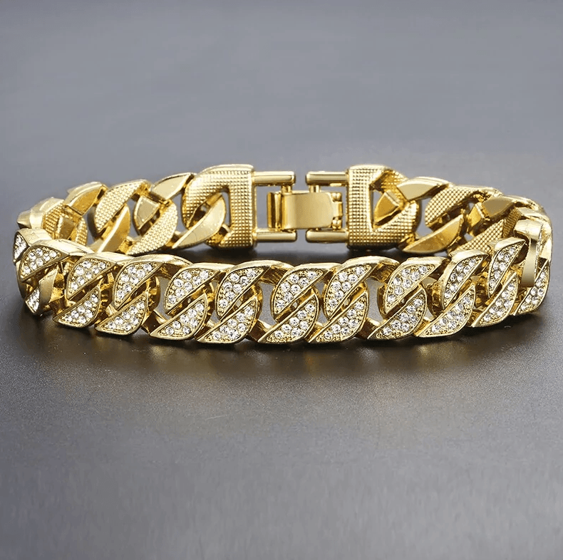 Introducing the Miami Curb Cuban Chain Bracelet For Men Gold - the epitome of style and luxury. This bracelet is the hottest trend in the menswear market, making it a must-have accessory.