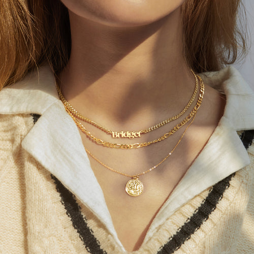 Say it in style with our unique name necklace! This exquisite and quality-made personalized necklace is sure to impress. Crafted with a figaro chain, you’ll be so proud to own one of these incredibly stylish necklaces, which feature your very own name. Nothing can beat the trendiness of wearing your name as a charming accessory around your neck that flatters all body shapes and outfits.