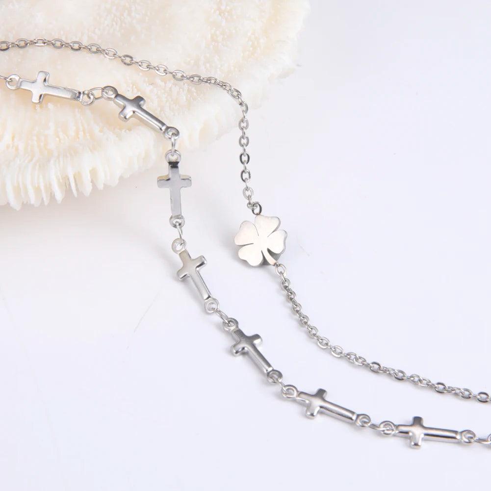 Crafted from high-quality stainless steel, our Foot Chain features a delicate four-leaf clover design that symbolizes good fortune. Let luck be on your side as you flaunt this stylish piece, adorned with simple beads for that extra touch of playfulness.