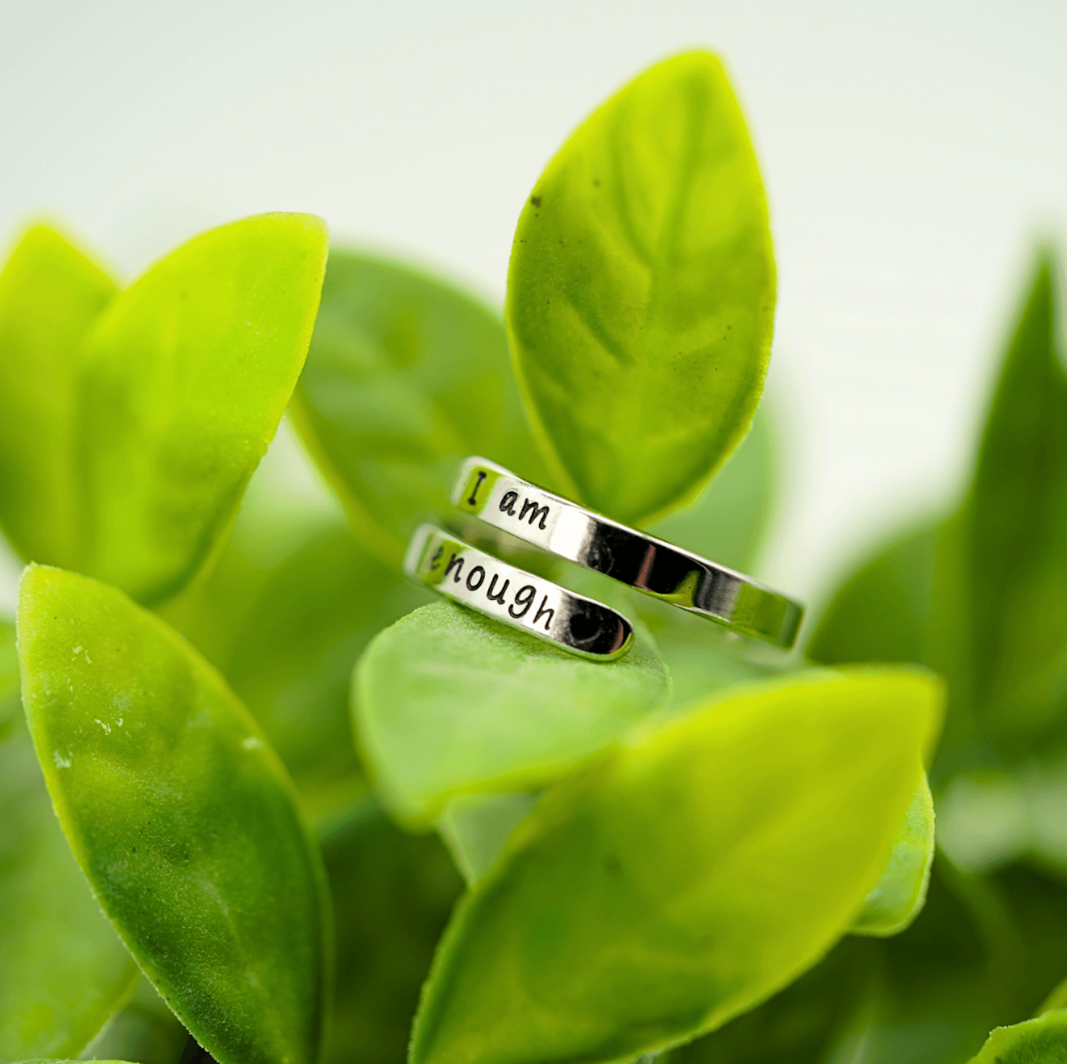 Introducing the I Am Enough Ring – a powerful statement of self-love and support for mental health. Crafted from solid sterling silver, this ring is a lovely reminder to always stay true to your beliefs and feel confident in yourself. With each purchase, you will be helping the greater good by contributing a percentage to NAMI, the National Alliance on Mental Illness. Every step taken in fighting against negative stigma starts with us; together, we can make lasting change and reduce discrimination. Wearing the I Am Enough Ring is just one small way to show your support for those battling mental illness, as well as help promote awareness about their struggles. So take pride in your purchase and join us in making a lasting difference!