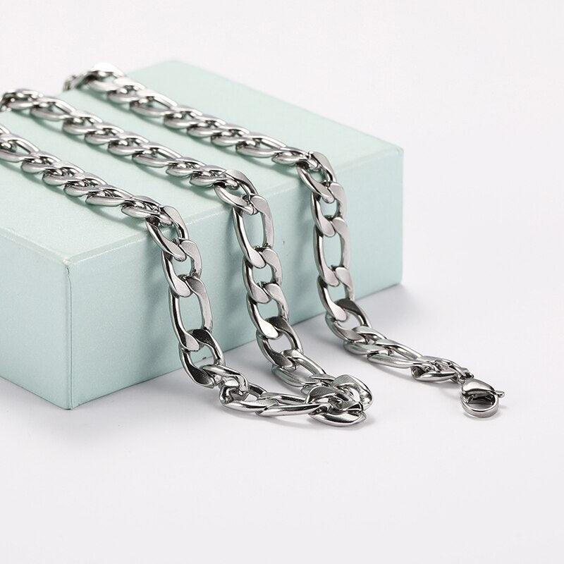 Our Men's Curb Cuban Chain Necklace is a piece of jewelry that should not be overlooked! This innovative stainless steel chain necklace perfectly combines urban street style with chic luxury. The sleek Figaro link chain is designed for today's modern man looking to convey strength and sophistication. This Cuban Chain Hip Hop Rope Box Chains Necklace offers an eye-catching rope design which creates a bold, dramatic statement and visually sharpens any ensemble. Whether you are headed into the office or out on the town, this piece adds an undeniable edge to every look. Crafted from superior stainless steel providing maximum durability, our Men's Curb Cuban Chain Necklace will maintain its polished shine, wear after wear. Invest in this timeless Punk Jewelry Choker today and stand out from the crowd in style!