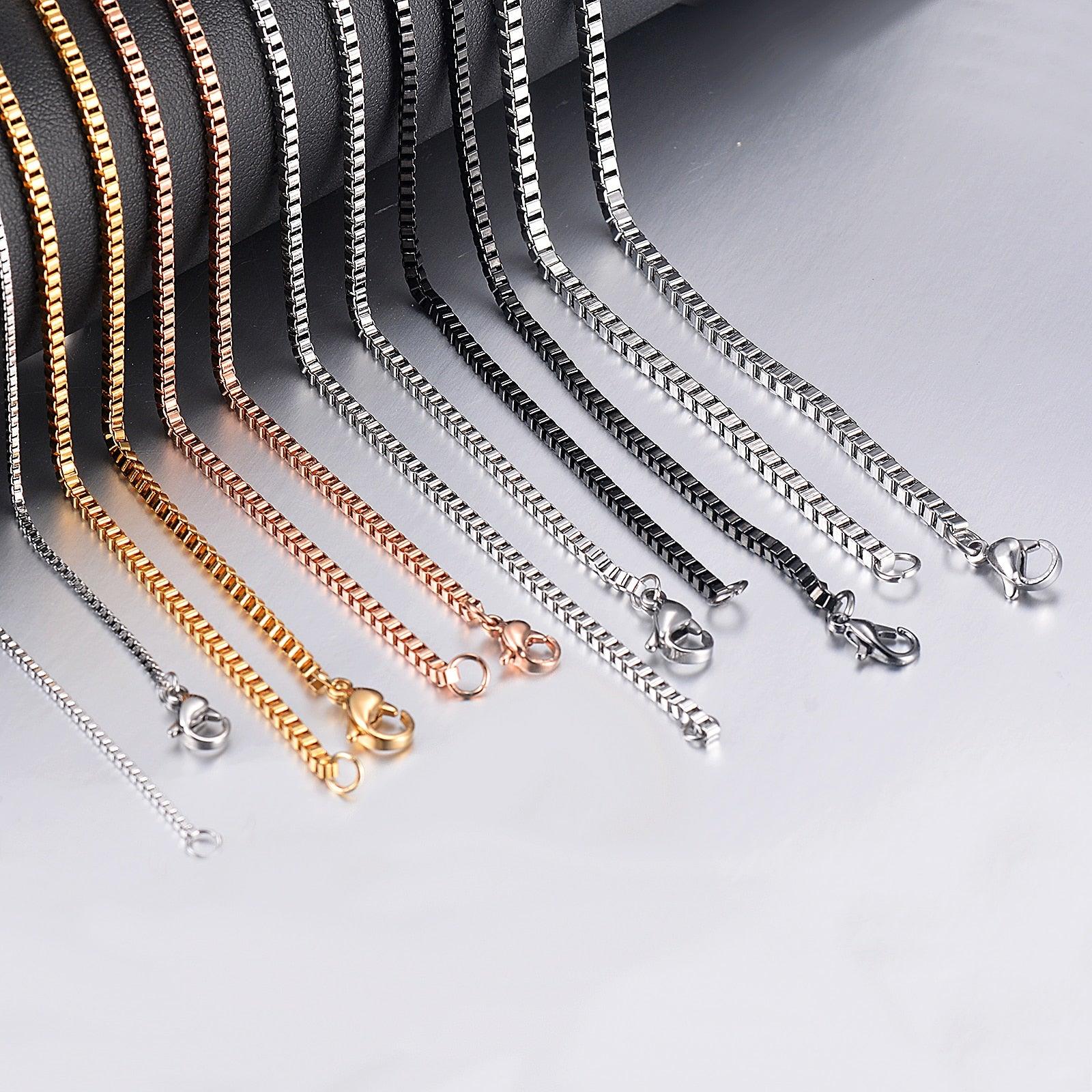 Upgrade your look with this versatile Stainless Steel Box Chain Necklace. Crafted with stainless steel, this necklace is made to last so you won't have to worry about replacing it any time soon. It has a width of 2mm/2.5mm/3mm and is available in a variety of personalized lengths, making it perfect for creating unique looks. With its 100% brand new condition and waterproof and non-allergic properties, this necklace will take your style to the next level while remaining comfortable and reliable – plus, you can feel good knowing that this was crafted with sustainability in mind! Add the Stainless Steel Box Chain Necklace to your collection now for a timeless look that never goes out of style.