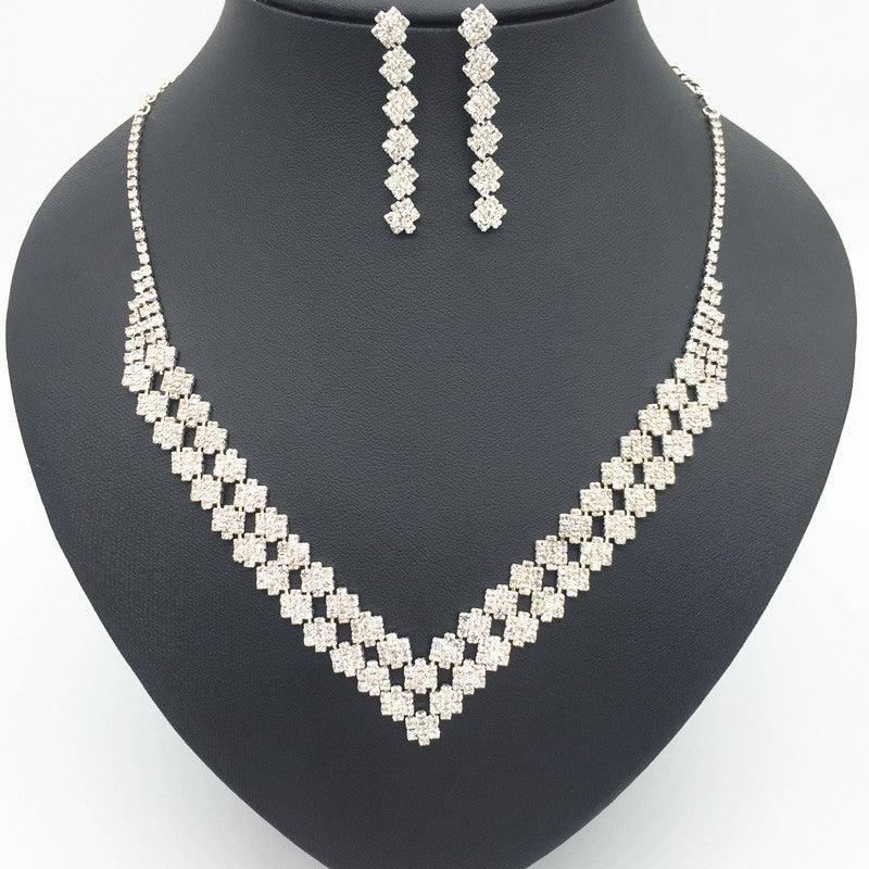 Bridal luxury double Diamond Pendant jewelry set wedding dress accessories